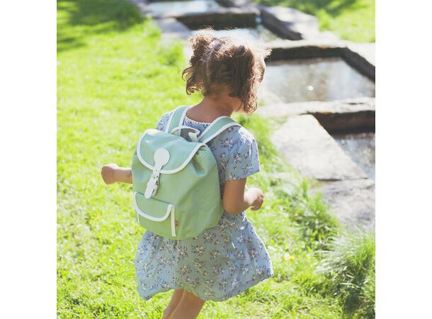 God på små rygger, med myke, solide skulderreimer og justerbar brystreim. Refleks medfølger i lommen foran på sekken. Lekre detaljer i kunstig lær. Str. 1-3 år. Ca. 6 liter.