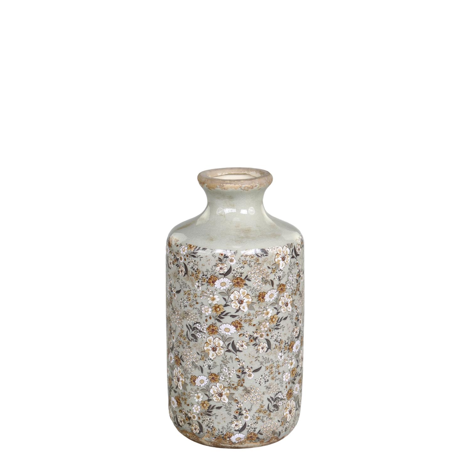søt keramikkvase fra Chic Antique. Den sarte grønne tone og blomstermønster,