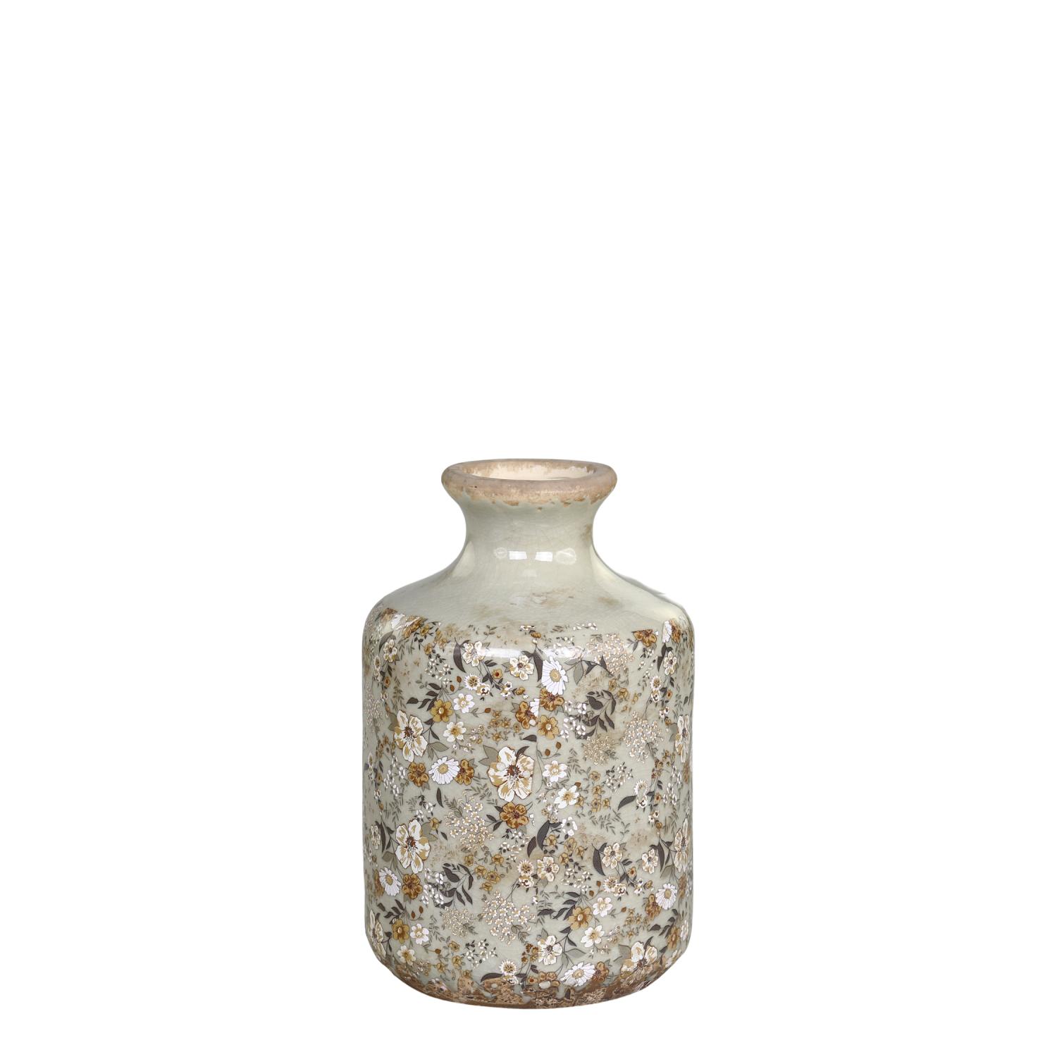 søt keramikkvase fra Chic Antique. Den sarte grønne tone og blomstermønster,