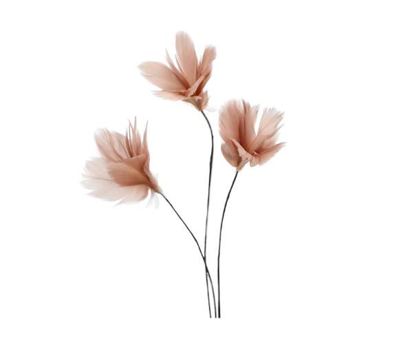 Fjær med ståltråd, formed som blomster. Perfekt for å dekorere greiner eller blomsterarrangement. Finnes i flere farger.