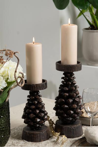 Kongle lysestake laget i brun Poly