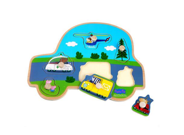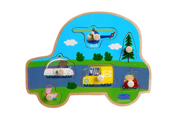 Et fargerikt trepuslespill for de minste. Dette knottepuslespillet er designet i en søt bilformet treramme og formet som de søte karakterene fra Peppa Gris. De barnevennlige knottene hjelper de små spillerne med å plassere de fargerike Peppa Gris-brikkene i spillverdenen. Puslespillet trener barnas motoriske og kunstneriske ferdigheter og fargene fremmer kreativitet.
